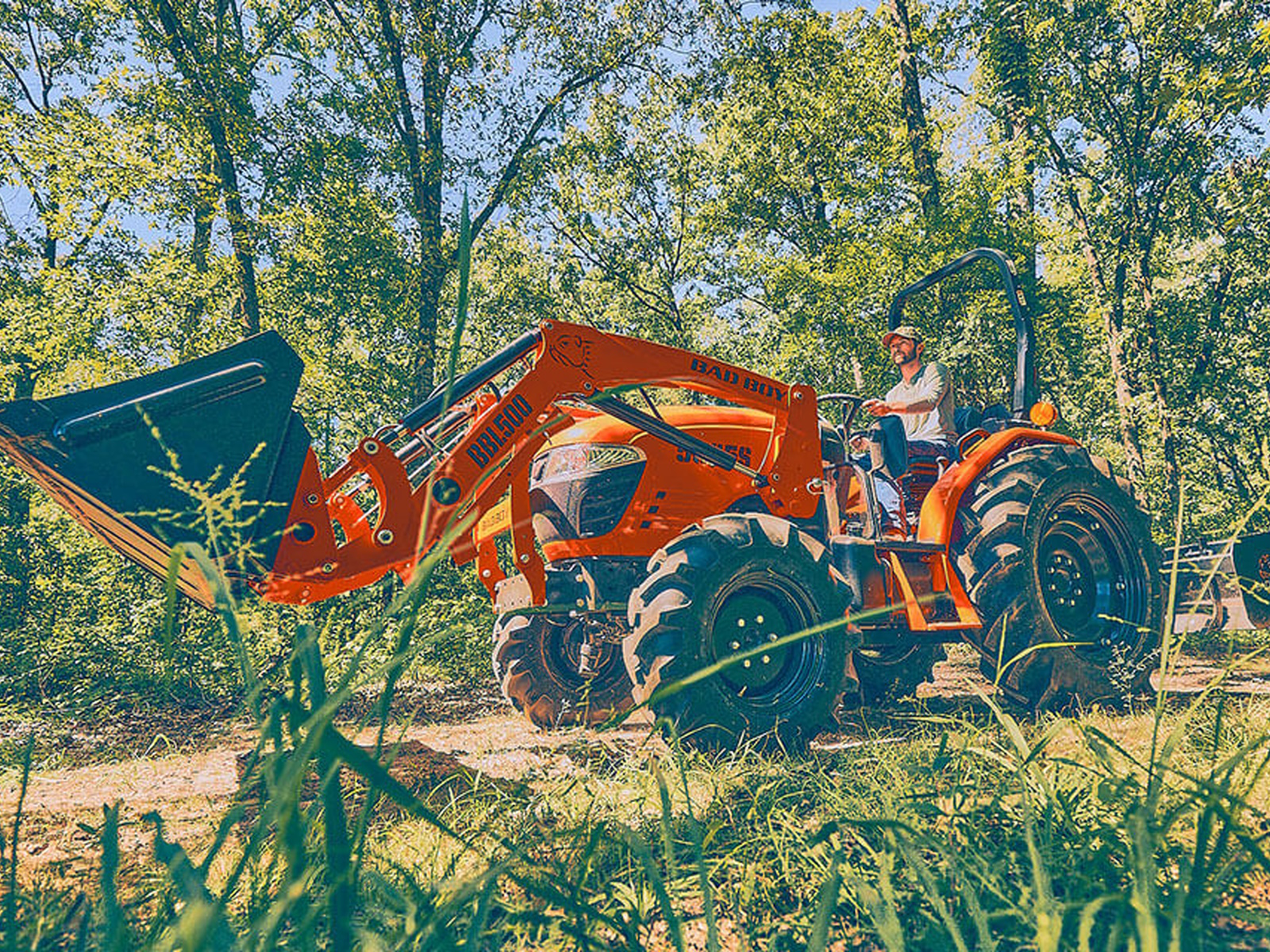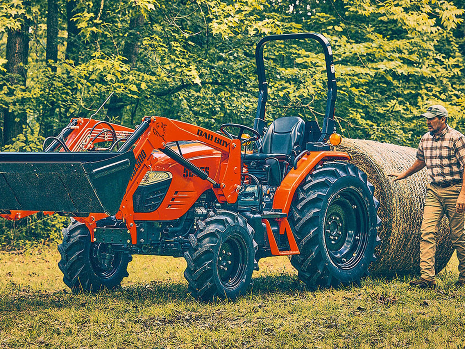 If you want to get work done quicker and easier, start with the Bad Boy 5045 Tractor. Our tough three-point hitch and front loader quick attach and latch implements are built to Bad Boy’s industry-leading standards. Made from heavy-gauge, welded and fabricated steel, they’re more than ready to pull their weight around your property. The Bad Boy line-up includes; Box Blades, Land Graders, Rotary Tillers, Disc Harrows, Forks and Hitches, Front Grapples, Grader Blades, Landscape Rakes and Rotary Brush Cutters. They’re built for a lifetime of work around the field and farm, just like this Bad Boy.