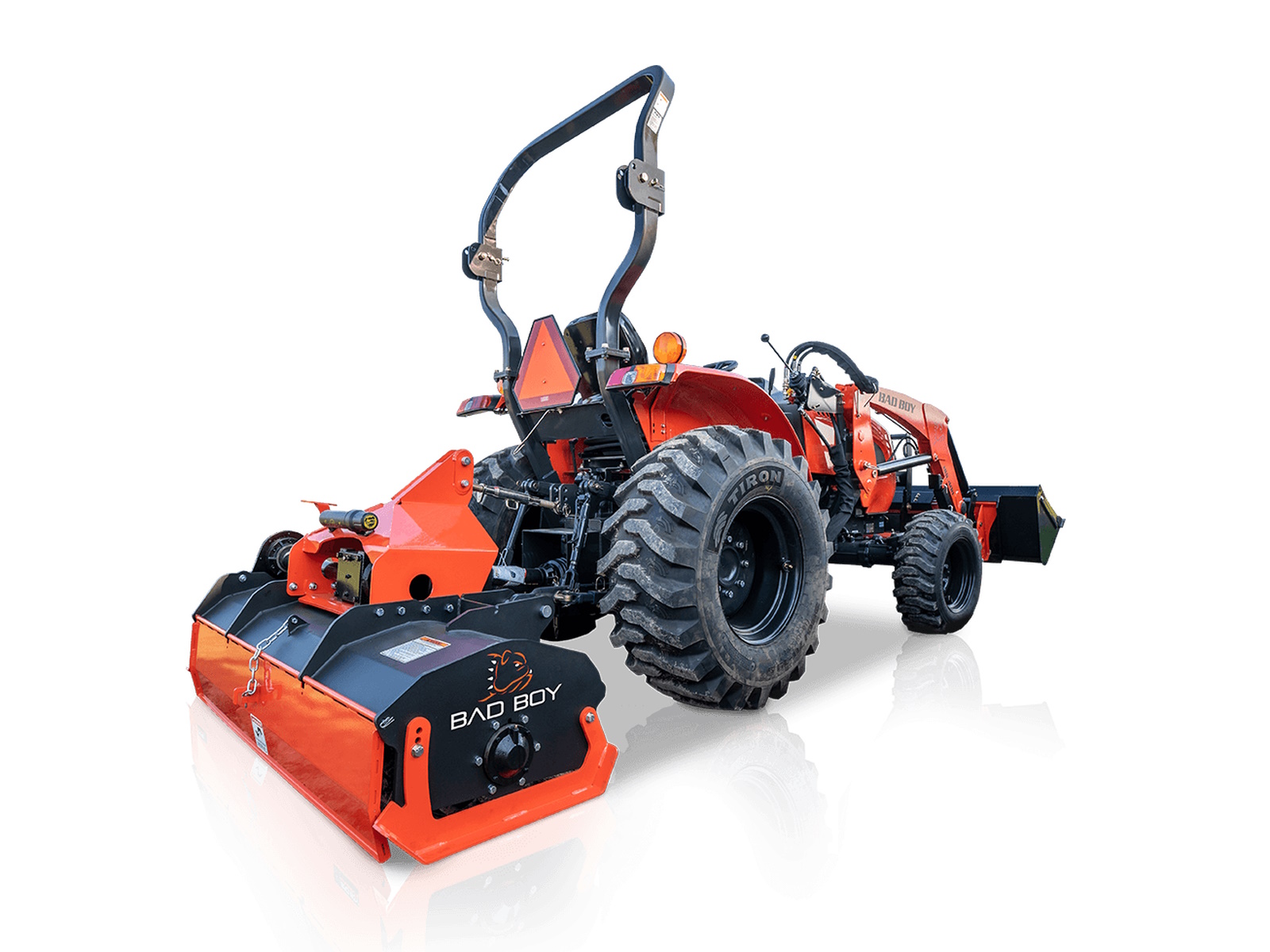 If you want to get work done quicker and easier, start with the Bad Boy 5045 Tractor. Our tough three-point hitch and front loader quick attach and latch implements are built to Bad Boy’s industry-leading standards. Made from heavy-gauge, welded and fabricated steel, they’re more than ready to pull their weight around your property. The Bad Boy line-up includes; Box Blades, Land Graders, Rotary Tillers, Disc Harrows, Forks and Hitches, Front Grapples, Grader Blades, Landscape Rakes and Rotary Brush Cutters. They’re built for a lifetime of work around the field and farm, just like this Bad Boy.