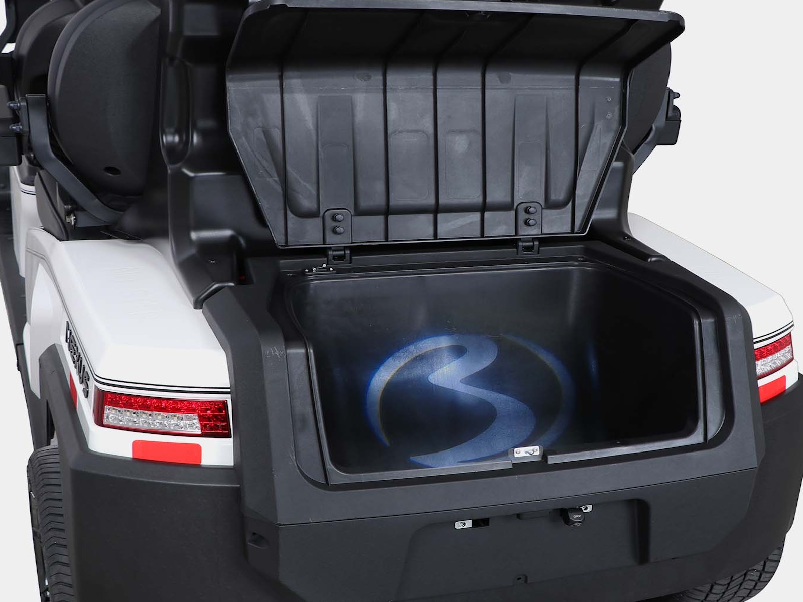 The Nexus is powered by a range-extended 72v drive system and is packed with more standard features than any other cart at its price point. Complete with a 13″ high-res infotainment center, roof-mounted fans, lights, and speakers, a beach chair holder, LED accent lighting, and lockable storage. The Gen2 adds power steering, adjustable camber, color-changing under mounted lights, push-button start, and so much more… be prepared to be the talk of your neighborhood with the all-new Bintelli Nexus!