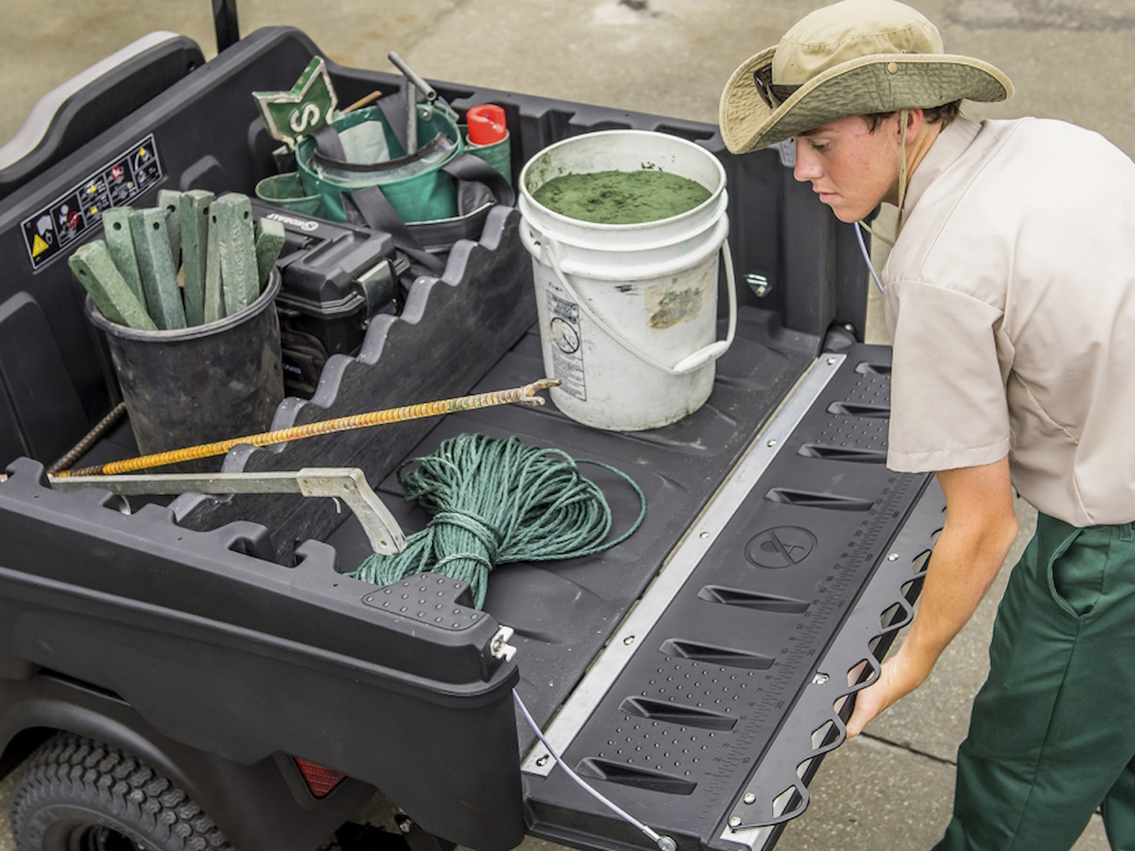 The Hauler 1200X was built to face the toughest challenges head-on. The fuel-efficient 13.5 hp EFI gas engine, customizable bed, and added ground clearance for rough terrain make the hardest day easy. From transporting equipment around your facility to watering down greens, redefine the possibilities of your workday with the Hauler 1200X.