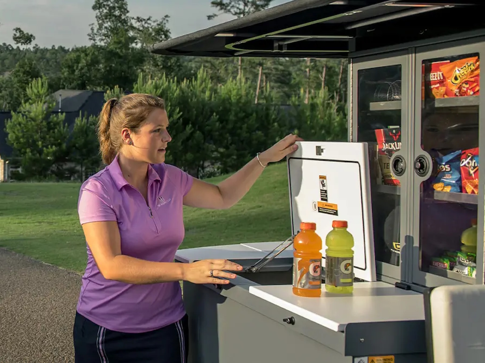 The Refresher Oasis was built for long days and busy events. With its industry-leading can capacity and enough merchandising space for your most popular items, stopping to restock is yesterday's problem. Available with a silent, maintenance-free ELiTE® lithium battery powered by Samsung SDI technology or a fuel-efficient 13.5 hp EFI gas engine, the Refresher Oasis leads to unparalleled customer service.