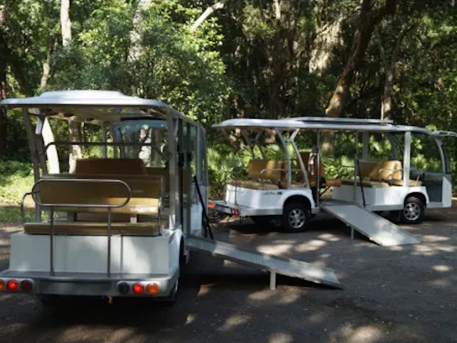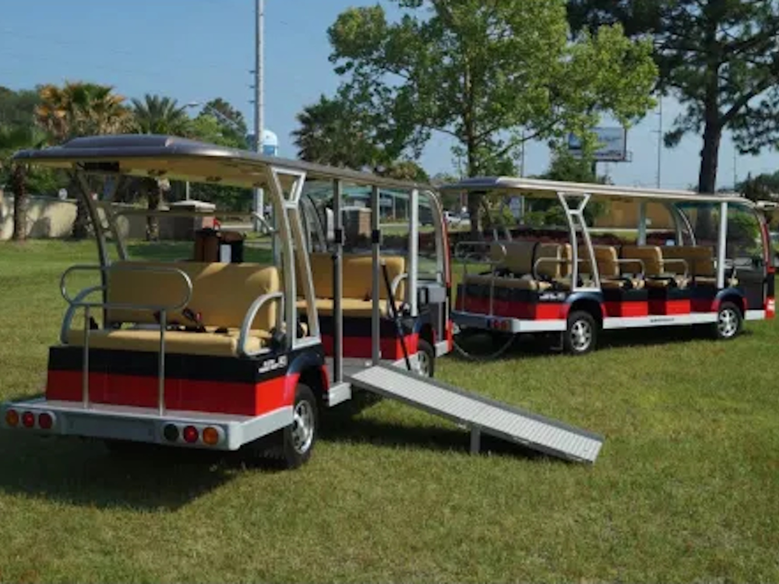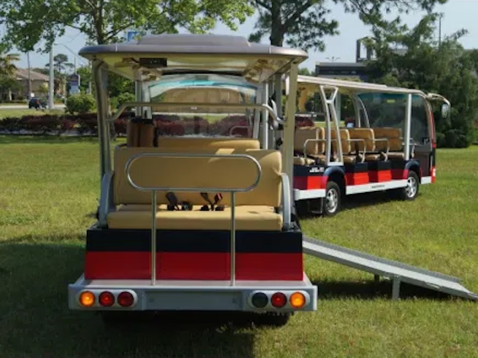 This 11 passenger trailer can be towed by any of our larger shuttles that include the upgraded motor!