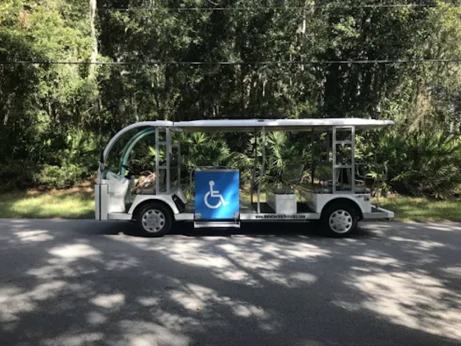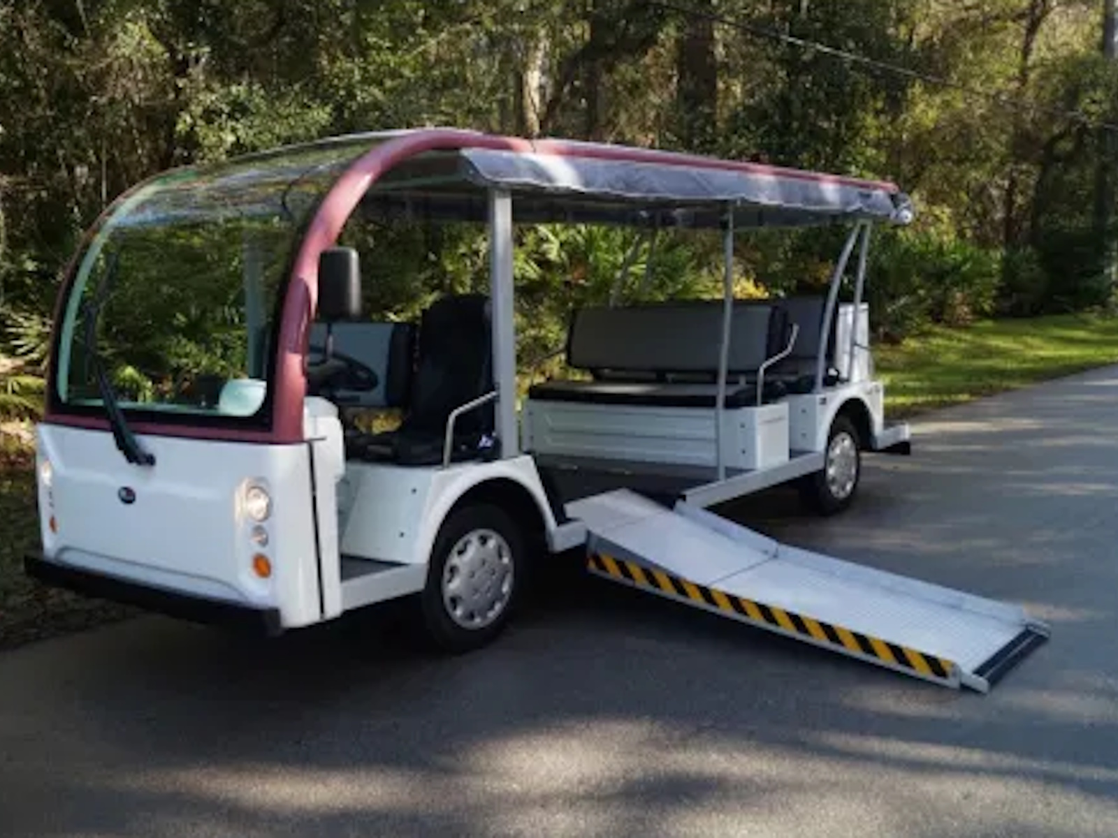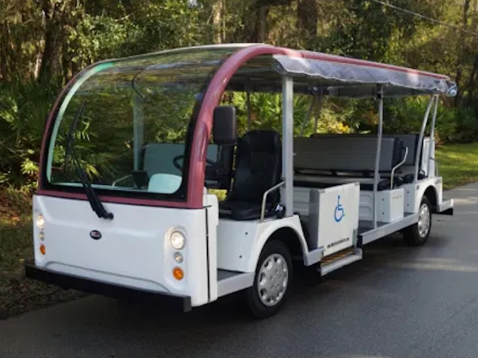 Our vehicles cost about one penny per mile traveled if you charge your vehicle overnight, when electric power is at its cheapest! Our built in on board chargers not only keep our batteries ready to go but contain a microprocessor so they will never overcharge. Once a full charge is detected, they simply turn themselves off! You will be able to "opportunity charge" your vehicle at anytime while on a break, shopping or simply at lunch because your charger will be contained right on the vehicle. This wheelchair accessible shuttle bus is perfect for any shuttle application that requires use of a vehicle at speeds of 25 miles per hour or less in a clean, quiet, smooth “classy” environmentally friendly setting.