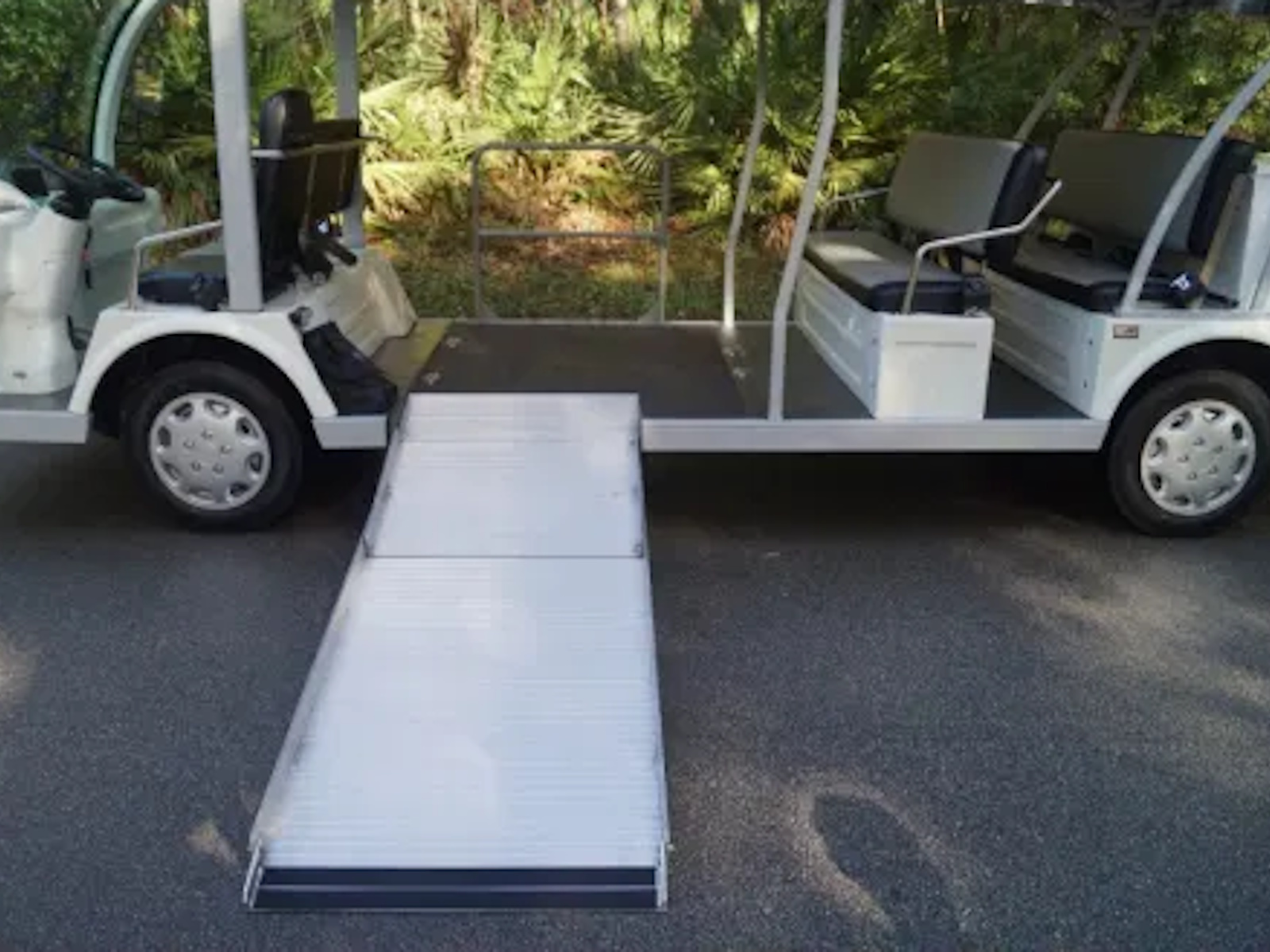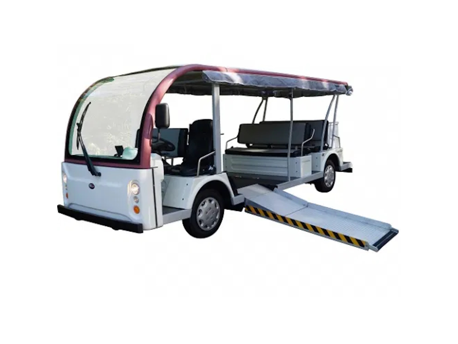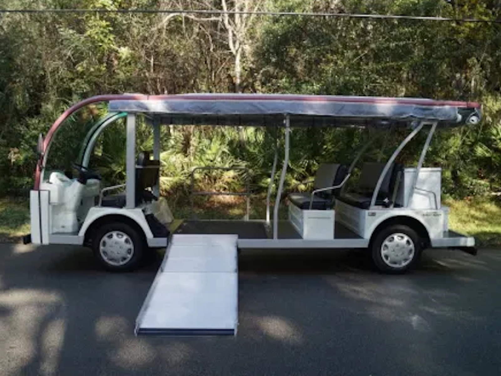 Our vehicles cost about one penny per mile traveled if you charge your vehicle overnight, when electric power is at its cheapest! Our built in on board chargers not only keep our batteries ready to go but contain a microprocessor so they will never overcharge. Once a full charge is detected, they simply turn themselves off! You will be able to "opportunity charge" your vehicle at anytime while on a break, shopping or simply at lunch because your charger will be contained right on the vehicle. This wheelchair accessible shuttle bus is perfect for any shuttle application that requires use of a vehicle at speeds of 25 miles per hour or less in a clean, quiet, smooth “classy” environmentally friendly setting.