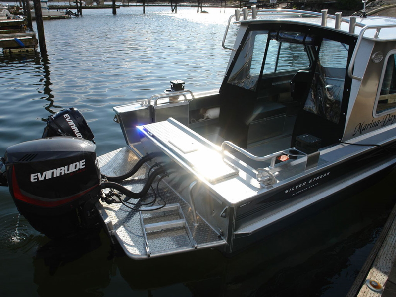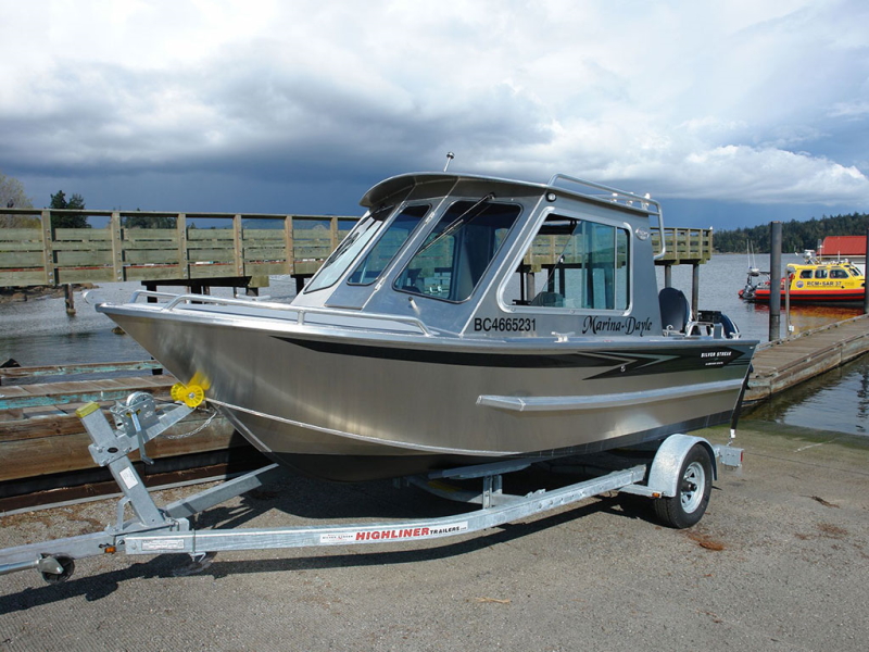 One of our most popular boat models, the classic Silver Streak Challenger has been in production in some variation for 25+ years! With heavy duty sides, solid gunnels, side stiffeners, and lots of leg room, this stable model offers a big boat feel and separates this boat from the competition. The extra beam and gunnel height makes the Challenger simply the strongest and safest boat in its class. The 18 degree deadrise, integrated delta pad and transom pod all increase fuel economy and stability, while tackling anything the West Coast can throw at it. This vessel has the perfect balance of a big boat feel, while still being maneuverable on a trailer and at sea. Throw some crab traps on the roof, add some rod holders and enjoy this salty boat!