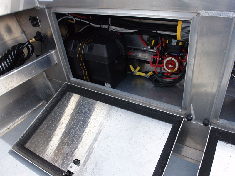 - 1 x Aluminum deck in main cabin with storage hatch(es)