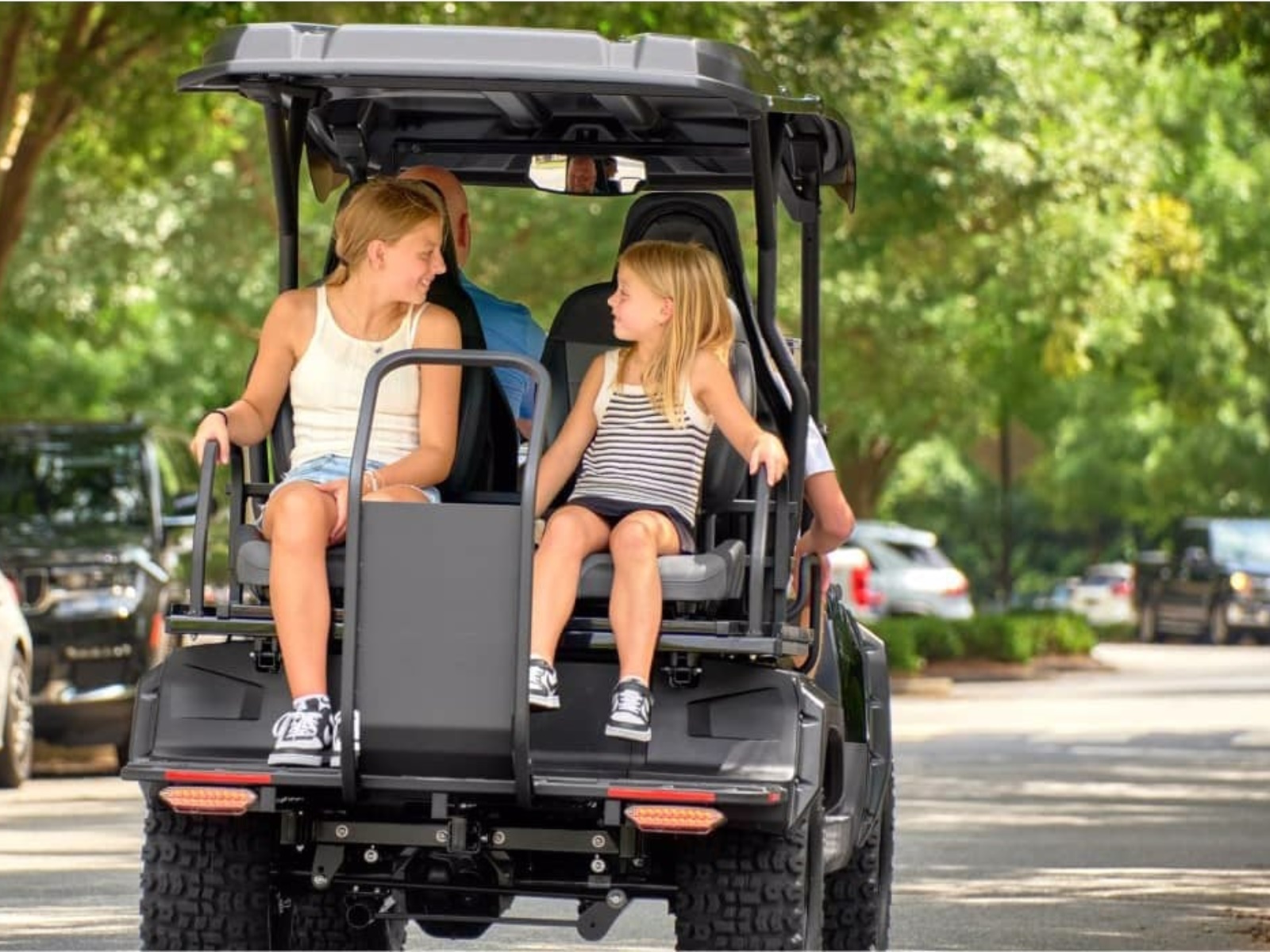 The UMAX Rally 2+2 combines all the great features of the UMAX Rally with a rear facing convertible seat. Take the family around town or on an adventure at a top speed of 19.5 mph. Turn heads with NEW integrated LED brake and taillights, high-back contoured seating, a redesigned steering wheel, lightweight suntop, and rear-view mirror. Plus, integrated onboard charging makes powering up easier than ever.