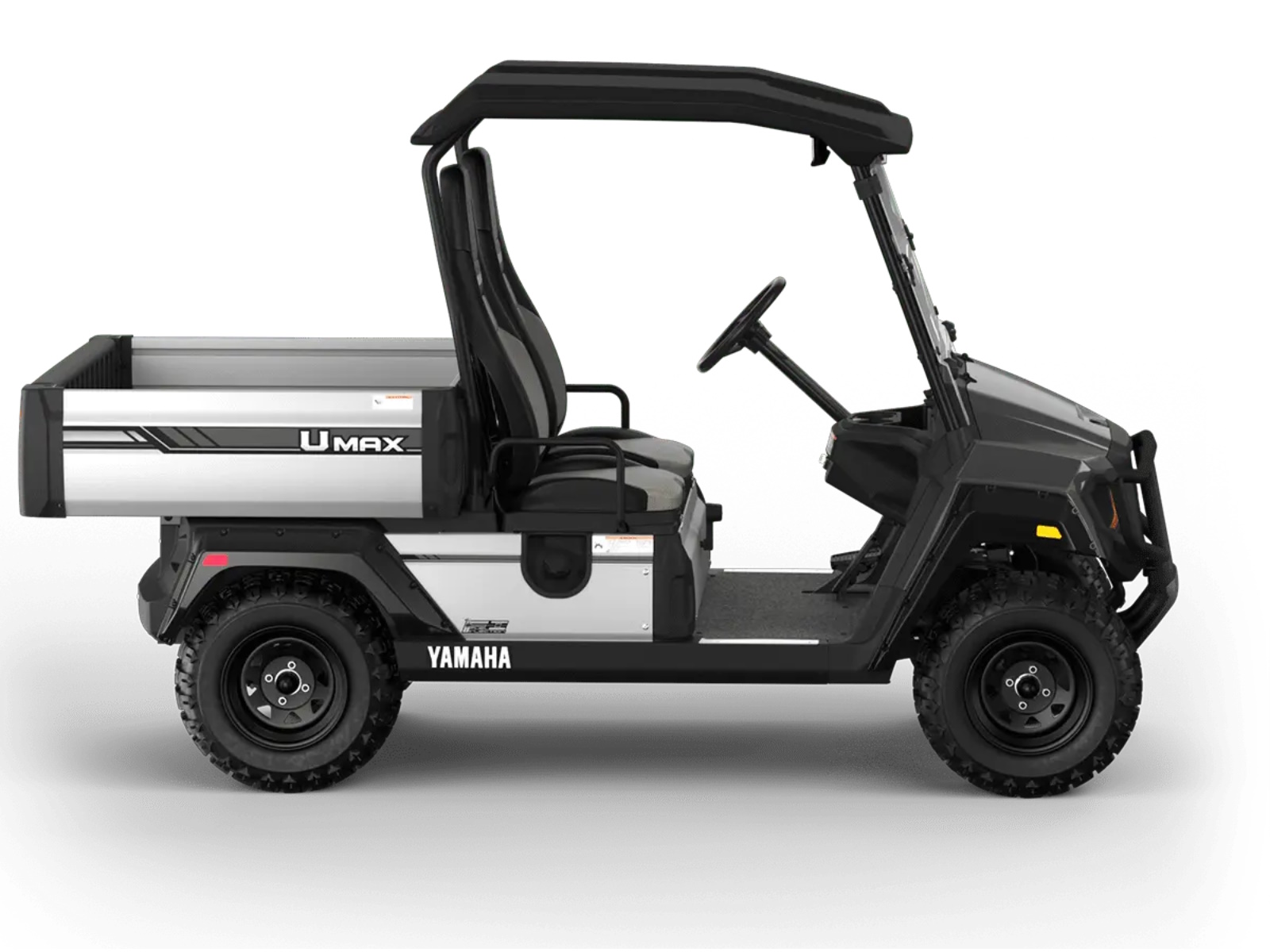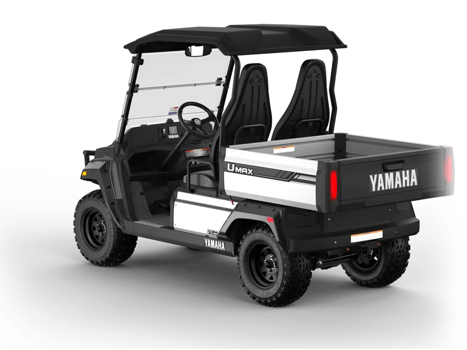 The UMAX Rally is built to handle it all with lifted suspension, 23” tires, brush guard, and deFender fender flares. NEW for 2026: integrated LED brake and taillights, contoured high-back seats, redesigned steering wheel, lightweight suntop, new rear-view mirror, and an onboard charger—with a top speed of 19.5 mph.
